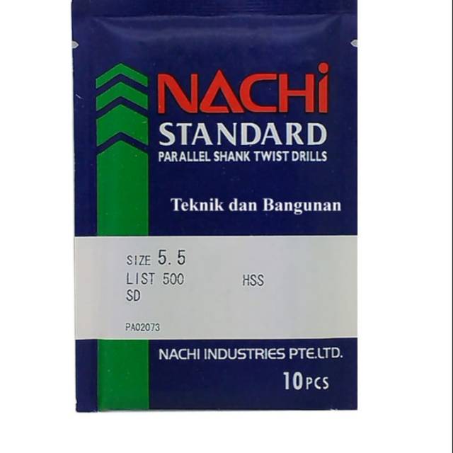 Nachi Mata Bor HSS 5.5 mmProduk original Nachi, dijamin keasliannya.Fungsi : untuk pekerjaan bor pada besi / logam sejenisnya** Foto yang ditampilkan adalah packing isi 10 pieces, apabila order dibawah quantity tersebut maka barang akan dikirim dalam kemasan satuan ***Harga yang tertera diatas merupakan harga per pcs ( 1