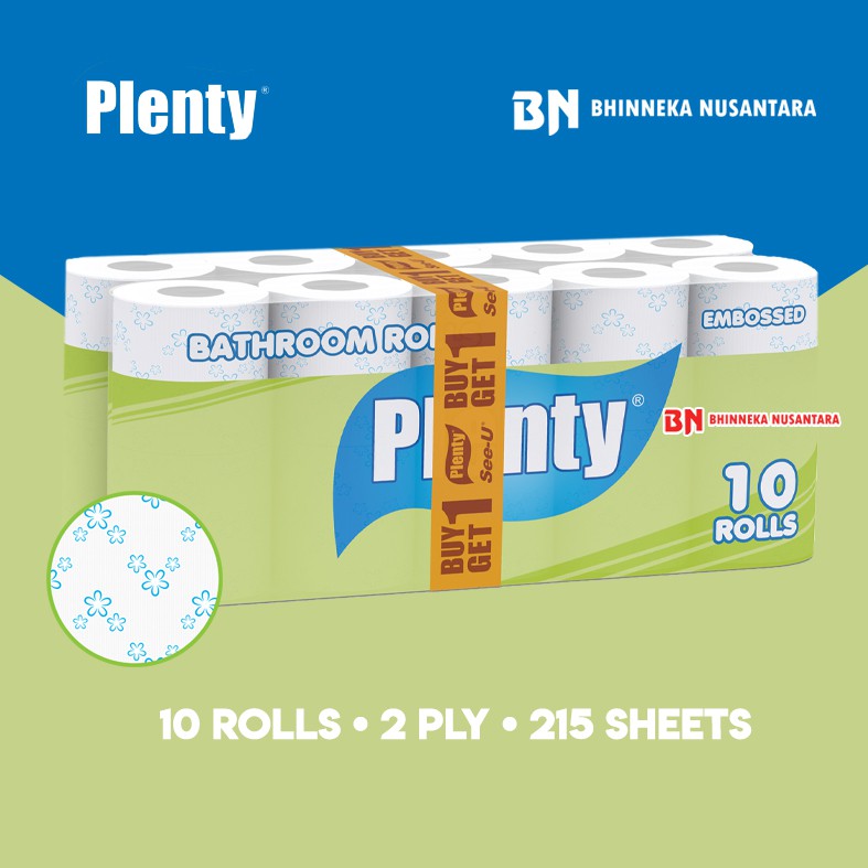 Sale Perlengkapan di Kabupaten Situbondo Plenty Bathroom Rolls Tissue Makro Mikro Flower [10 Roll/2 Ply] - Buy 1 Get 1 dari Bhinneka Nusantara Kota Jakarta Pusat
