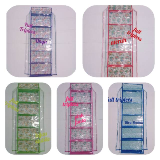 Rak tas dengan motif bunga, 5 tingakat + 1 tingkat kecil, sehingga muat untuk tas model sekarang. pakai retlisting kanan kiri, sehingga tidak akan mudah kena debu.PENTING!!Motifnya akan selalu berubah sesuai dengan stok bahan yang ada. hanya dapat memilih warna yaitu: MERAH, BIRU MUDA, PINK, BIRU TUA, UNGU, HIJAU.Hasil dari produksi sendiri, untuk grosir bisa langsung hubungi. SEMUA WARNA YANG ADA READY.#merah #biru #ungu #fanta #hijau #hitam #or