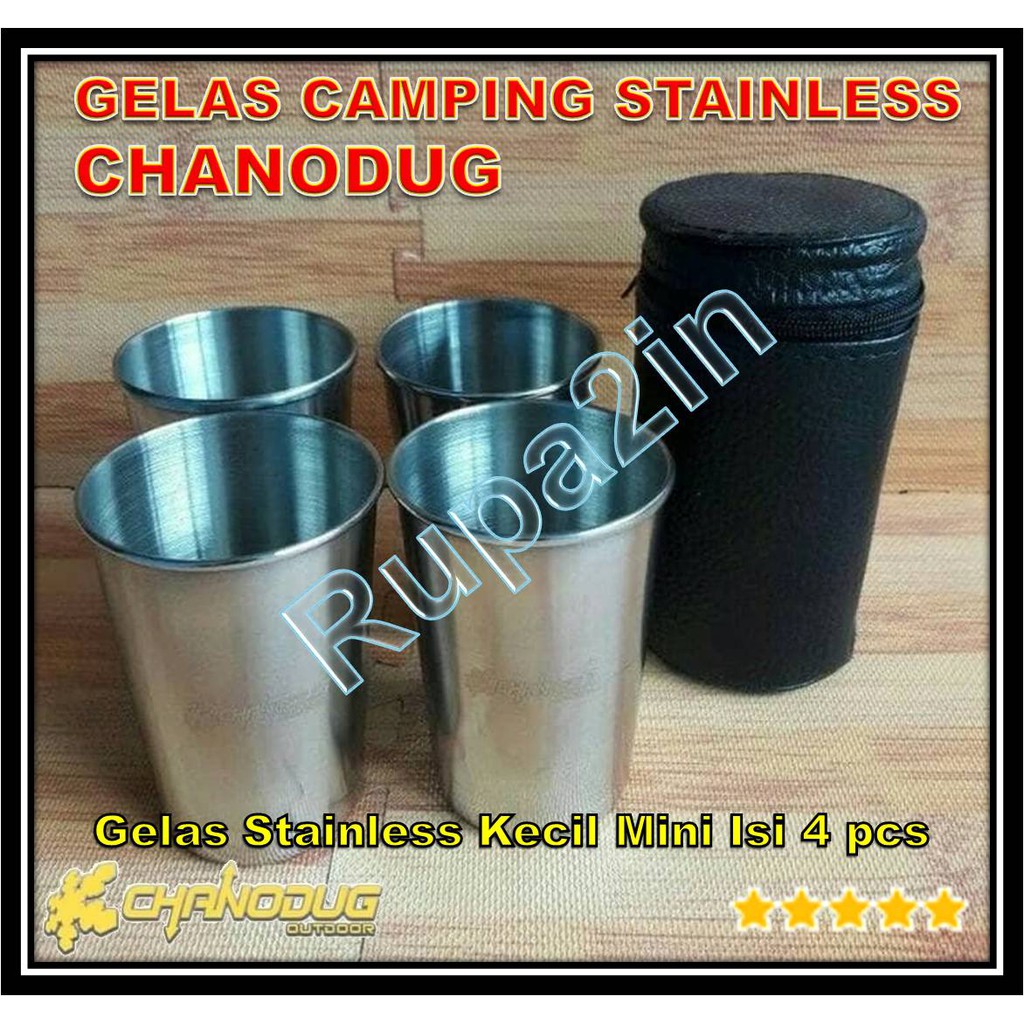 READY STOCKGelas Set CHANODUG terbuat dari bahan Stainless terdiri dari 4 pcs gelas di lengkapi dengan wadahnya, cocok untuk dibawa camping, hiking, traveling buat ngopi2 atau teh. .Ukuran Medium :- Tinggi gelas 8,5cm- Diameter bawah 4,5cm- Diameter atas 6cmFeatures:100% Brand new and high quality!Light and easy to carry, ideal for camping, holiday, picnic and so on.An ideal accompaniment to a hip flask, cup makes it much more.Convenient to enjoy the hot coffee, milk tea and so on while you're out and about in chilly weather.Spesifikasi :Cup material: Stainless SteelCover material: Faux LeatherCapacity: 150 ~ 200mlColor: SilverPaket Termasuk:4 x Stainless Steel Cup1 x Faux Leather CoverHarap diperhatikan sebelum order: Pastikan kembali alamat pengiriman, nomor telepon, dan kode pos tujuan pengiriman anda secara benar karena kami tidak bertanggung jawab atas kesalahan akibat kesalahan penulisan alamat yang mengakibatkan kesalahan penerima barang.Untuk keamanan hanya gunakan transaksi online melalui sistem Shopee.Jika barang telah diterima kami mohon konfirmasi & ulasan barang sebagai masukan untuk pelayaran