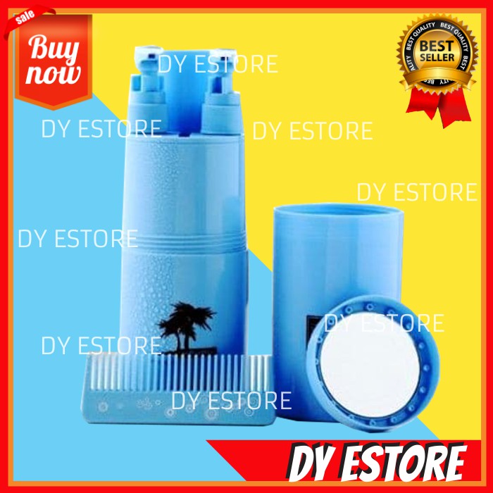 BARANG READYODOL, SIKAT GIGI, HANDUK WAJAH TIDAK TERMASUK DI DALAM KEMASAN !!Musim liburan sebentar lagi, perlengkapan wanita begitu banyak. Banyak yang harus dibawa saat traveling diantaranya perlengkapan mandi seperti sabun mandi, sikat gigi, shampoo, odol dan lainnya. Untuk sabun mandi dan shampoo biasanya tersedia di hotel, namun sabun yang tersedia belum tentu cocok dengan kulit anda, kadang ada yang kulitnya lebih sensitif sehingga tidak bisa memakai sembarang sabun.Saat traveling sebisa mungkin anda harus meminimalkan barang bawaan karena jika kelebihan bagasi anda akan dikenakan denda kelebihan bagasi. Saat traveling isi koper pasti bertambah terus diantaranya belanja oleh-oleh. Lalu bagaimana meminimalkan barang bawaan??Cukup mudah, anda dapat meminimalkan perlengkapan mandi yang hendak dibawa dengan travel toiletries kit. Anda dapat menghemat ruang dan berat bagasi. Travel toiletries kit sekilas bentuknya seperti botol minum tapi bukan. Di dalam botol berisi perlengkapan mandi yang wajib dibawa saat traveling.Deskripsi :-Penutup bagian atas seukuran gelas, dapat digunakan untuk berkumur- Jika dibuka penutup atas akan terlihat 2 pencetan sabun, di bawah pencetan sabun terdapat ruang untuk tempat sabun cair dan shampoo, dapat diisi sabun mandi dan shampoo, kapasitas 60 ml, dilengkapi jepitan penahan anti tumpah- Di antara pencetan sabun terdapat selipan sisir, sisir sudah termasuk di dalam kemasan- Di belakang tempat sabun terdapat holder sikat gigi dan odol (Odol dan sikat gigi TIDAK TERMASUK di dalam kemasan)- Bagian bawah botol bisa dibuka, terdapat cermin pada bagian bawah tutup botol.- Juga terdapat ruang untuk selipan handuk wajah di bagian bawah botol (Handuk wajah TIDAK TERMASUK) di dalam kemasanSangat praktis bukan?? mau mandi cukup bawa 1 botol toiletries kit untuk berbagai keperluan mandi, traveling gak pake ribet !!Size : 6.8 x