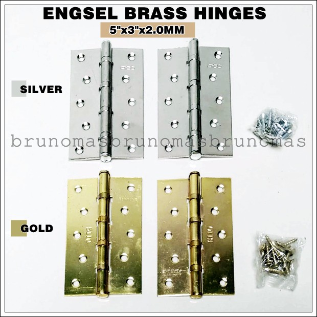 Engsel Pintu 5 inc HPP AIGO Brass HingesPilihan Warna* SILVER* GOLDUkuran 5" x 3" x 2.0 cm / 12.5 cm x 3cm x 2.0mmHarga diatas adalah harga untuk 1 pasang / 1 varian warnaNB : jika pembeli tidak mencantumkan warna dalam invoice/pesanan maka akan kami kirim warna stock y