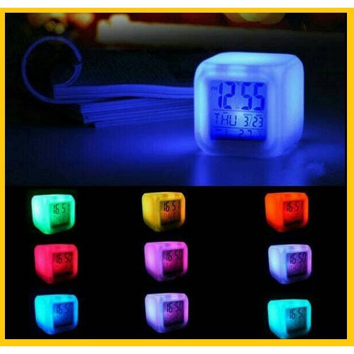 DETAIL PRODUK* Model: LCD alarm clock with light display* Backlit LCD Display (7 colors)* Display Size: approx 2.7 "inch* Display Lighting: switched off* Display information: time, day, month, temperature* Alarm function: yes* Alarm: yes* Light Function* Power LED: DC 4.5-6V* Power supply: 4 x battery* Dimensions (WxHxD): 9 x 9 x 9 Cm* Color: WhiteNB :- Barang sdah dicek kondisi fisik bagus (tidak pecah, rusak, patah, dll). Kerusakan yg terjadi dalam perjalanan (Ekspedisi) bukan tanggung jawab penjual.- Barang ini tidak bergaransi dari asalnya, tidak melayani retur, tidak melayani komplain.- TAMBAHKAN BUBBLE WARP SAAT PENGIRIMAN AGAR BARANG AMAN#jamkubus #jamkado #kadoulangtahun #jam7warna #jamwarna #jamdigital #jamkubus #jamkekin