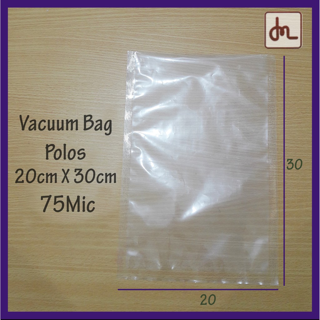 HARGA SUDAH PER 100 LEMBARVacuum bag / Plastik vacum adalah kantong plastik kedap udara yang terbuat dari campuran plastik nylon + lldpe yang khusus buat makanan (food grade) sehingga sangat aman. Plastik vacuum dapat digunakan untuk membungkus makanan beku (frozen food), buah-buahan dan sayur-sayuran agar tetap higenis dan tahan lama.Fungsi & Karakteristik vacuum bag:•Transparan•Tidak berbau dan ramah lingkungan•Elastis•Sangat sesuai untuk mengemas makanan beku, buah-buahan & sayur-sayuran•Meningkatkan keamanan produk yang di kemas•Menjaga makanan tetap higenis dan tahan lamaSpesifikasi :•Ukuran L X P = 20 X 30 •FOOD GRADE & Export quality•Ketebalan 75 Micron•Material : Ny 15 + LLDPE 60•POLOS•Plastik sudah teruji AnalysisCocok untuk para reseller, karena harga dijamin langsung harga distibutor. ^^Tersedia Berbagai Macam Ukuran dan ketebalanAlamat: Pergudangan Green Sedayu Biz Park Daan MogotUntuk pertanyaan lebih lanjut dapat mengubungi melalui ch