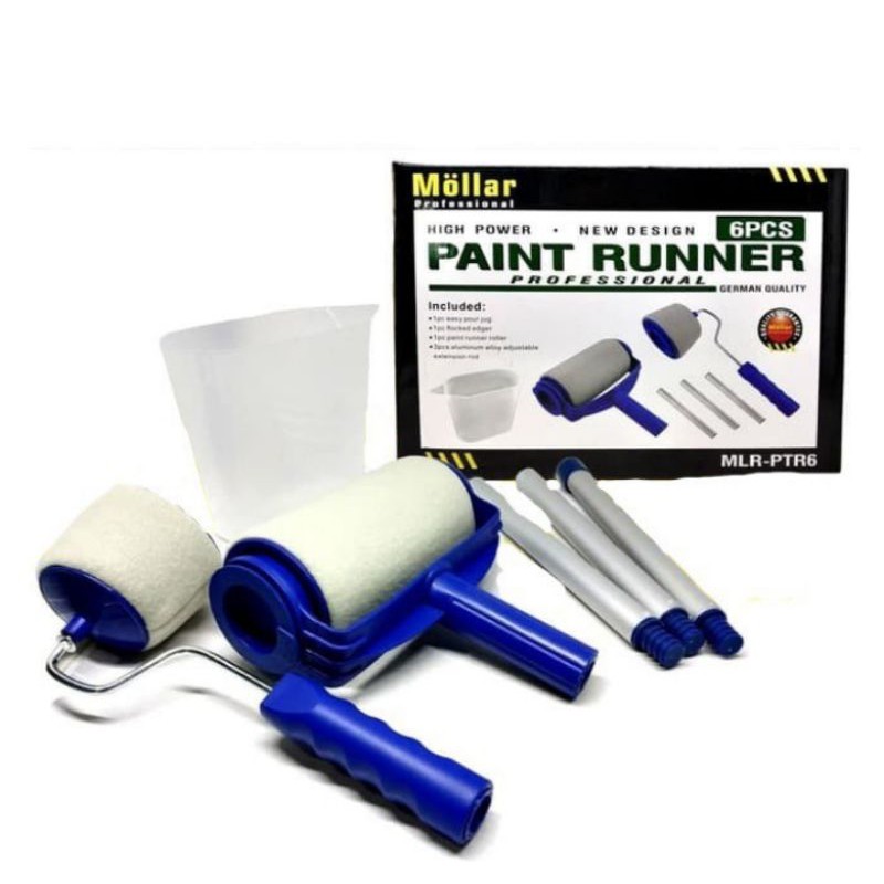 Brand : MOLLAR6 PCS PAINT RUNNERSKU : MLR-PTR6Kelengkapan Produk :- 1 pc wadah cat- 1 pc kuas roller- 1 pc kuas siku sudut- 3 pcs gagang roller bahan aluminiumHANYA GUNAKAN CAT ACRYLIC / LATEX, TIDAK BISA DIGUNAKAN UNTUK CAT MINYAK / EN
