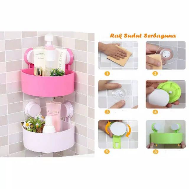 Rak sudut kamar mandiDidesain ergonomicDilengkapi dengan suction cup dengan daya lekat yang kuatIdeal untuk dekoarasi interior kamar mandi AndaMaterial : Plastikrak sudut kamar mandi berbahan plastik yang didesain ergonomic dilengkapi dengan suction cup dengan daya lekat yang kuat. Ideal untuk dekoarasi interior kamar mandi Anda.Cara pasang :Lap bersih Permukaan yang hendak dipasang, lalu keringkanLap bersih permukaan karet hisaptempel rak ke keramik atau kaca, lalu putar penghisap karet hingga melekat dengan